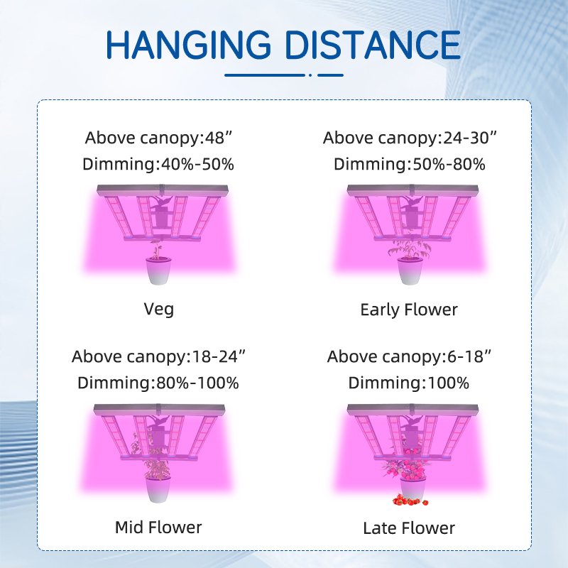 5. The recommended Mounting Height: 1ft ~ 3ft (30~90cm) Above plant canopy